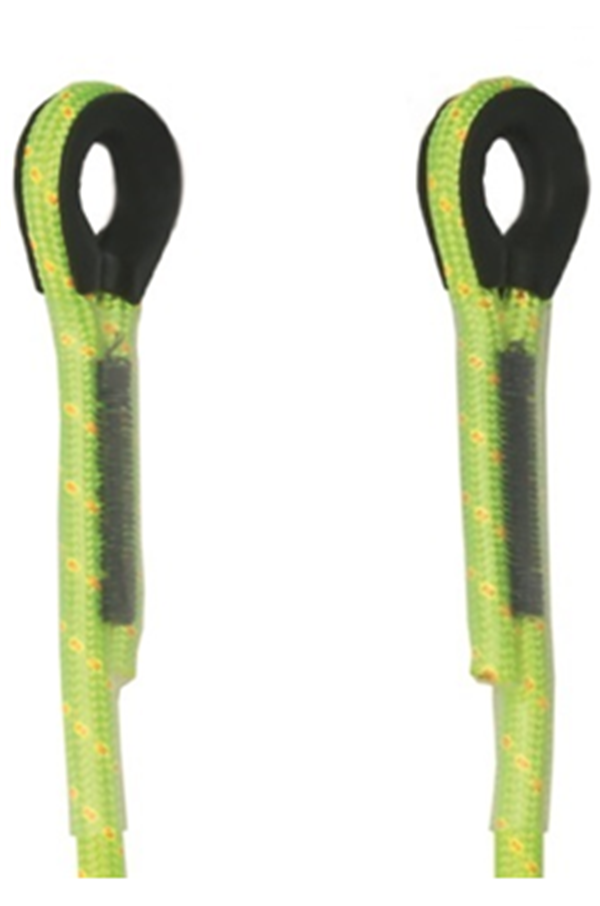 Rope lanyard has sewn end terminations complete with plastic thimble eyes and supplied with Screwgate Karabiners each end